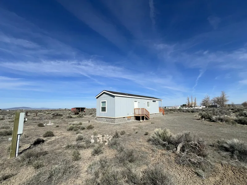 Like new, this peaceful high-desert retreat is ideal as a weekend escape or second home. Inside, you'll find durable laminate flooring throughout, crown molding and a spacious kitchen with ample cabinet space, perfect for everyday living or entertaining. Relax on the cozy front porch as you take in breathtaking sunsets, or enjoy sweeping desert mesa views from the bedroom window. Distant mountain vistas add to the serene, open feel of this picturesque setting. The property offers a fully fenced area ready for livestock, making it ideal for hobby farmers or those seeking a rural lifestyle. The home is also built on stem wall foundation and has never been moved from the original site, qualifying the home for a range of financing options. All of this comes with the convenience of being close to town, shopping, dining, and fuel, making it an excellent opportunity for a low-maintenance second home or a peaceful vacation retreat away from the hustle of city life.