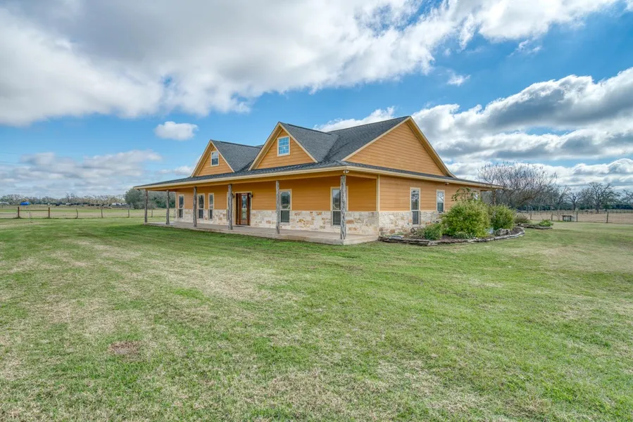 Don't Miss the Opportunity to Own this Custom Stone and Hardiplank Home situated on 20+/- Acres offering privacy and beautiful country views. The home boasts 2831 SF of spacious living featuring a split plan, 3 (or 4) bedrooms, 2 full and one-half baths. Other amenities include an office, gourmet kitchen, granite countertops, breakfast bar, walk-in pantry, and dining area, formal dining room, stone fireplace, and large front and back porches. Outdoors you will find a barn with attached stock pens, storage shed, and greenhouse. This open acreage has a slight slope and is currently under agriculture exemption (buyer to verify the ability to keep the ag exemption). The 20 acres and house can be purchased with an additional 37+/- Acres priced at ($14,000 per Acre). Located minutes from I-45 access, schools, medical facilities, schools, and shopping. ML# 52252247