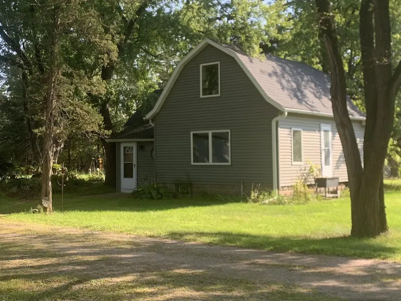 2 Bedroom home with vinyl siding, updated windows and kitchen! A 16x20 single stall garage and a 32x42 pole shed with concrete floor with a 12x16 heated office area all on nearly a full acre. The Hickory cabinets in the office are included!