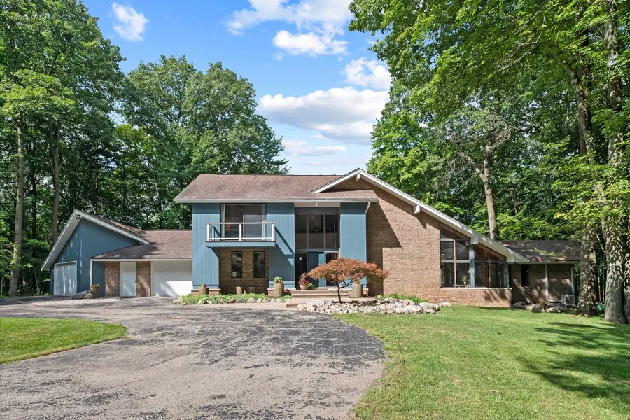 Escape to your own private oasis with this Mid-Century Modern masterpiece, perfectly nestled on 12.1 acres of pristine hardwoods. Offering complete privacy without sacrificing convenience, this property provides a true country retreat just minutes from town—without any dirt roads. A meandering driveway winds through lush forest, revealing an architectural gem that blends sleek Mid-Century Modern design with the tranquility of nature. Step inside to soaring vaulted ceilings, expansive windows, and open living spaces that invite the outdoors in. A dramatic wall of glass frames the woodland scenery, while a central fireplace creates a warm and inviting atmosphere. The updated kitchen is a chef’s delight, featuring modern cabinetry, clean lines, and an open layout ideal for entertaining. Recent improvements include new flooring throughout, fresh interior and exterior paint, upgraded lighting in the primary suite and bath, and an added reverse osmosis water filter, iron filter, and new well pump. The primary suite is a serene sanctuary with vaulted ceilings, floor-to-ceiling windows, and views of the surrounding woods—seamlessly connecting indoor and outdoor living. Enjoy your morning coffee or evening gatherings on the expansive deck by the pool, enhanced with a newly added section, fresh stain, and improved railings. Additional updates include: mini-split AC units with extended warranty through 2036, new dishwasher and sink, new water heater, whole-house water filtration system, and energy-efficient window weatherizing. With trails to explore, privacy to enjoy, and an unmatched aesthetic, this woodland retreat is a rare find. Propane heat (tank is leased) with natural gas available at the road.