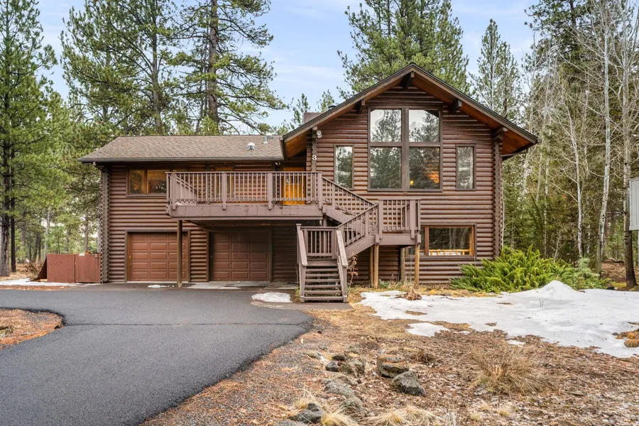 Escape to your own lodge-style retreat in Sunriver! This distinctive 5-bedroom, 3-bath log home is uniquely crafted w/ cedar lathe over the chinking, adding to its rustic charm. Ideally located across the street from the Big Deschutes River & close to Sunriver's North End amenities, this home offers both serenity & convenience. The vaulted great room boasts expansive windows that flood the space w/ natural light, while the lower-level bonus family room provides add'l space to relax. The kitchen features stainless steel appliances, blue-pine cabinetry, and an inviting eating bar. As you enter the driveway, you're welcomed by a charming cabin-in-the-woods setting, leading to an oversized two-car garage, carport, & plenty of parking. Enjoy all that Sunriver has to offer—30+ miles of paved bike paths, world-class golf, tennis & pickleball, & easy access to the Deschutes River for kayaking, paddleboarding, & fishing. Currently operating as an established vacation rental