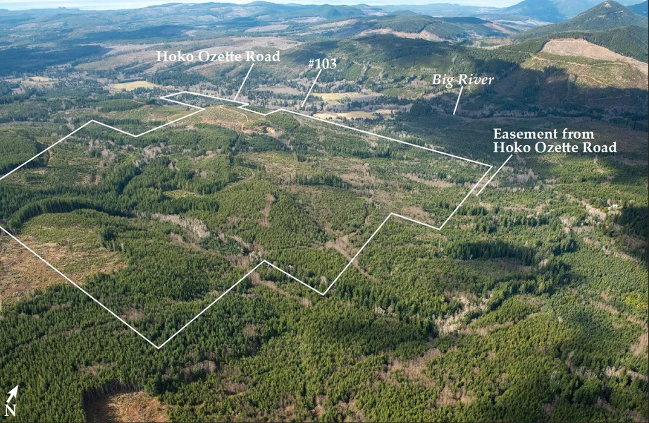 The 579+/- acre Hoko Ozette tract is the second largest timber tract being offered in this auction. It is located along the southside of Hoko Ozette Road, near Auction Property #103, Nichols Road. It has 419+/- acres of well-stocked 6 to 35 year old reproduction, with 194+/- acres in the 21 to 35 year age class, which will provide significant asset growth within 15 years. There is an estimated one million board feet of primarily western hemlock. By 2035, volume will be 2.8+/- million board feet. 122 acres of younger reproduction are located mostly in the southern portion of the property. There are 160 acres of mostly Douglas-fir site class II, with the balance of the tract site class III. A total of 120 acres is RMZ along tributaries of Boe Creek in the mid-section, and Stampede Creek in the southeast corner. There is an on site rock pit. The main gate is locked. Entry is via an easement from Hoko-Ozette Road at MP 10.9. This road system provides good access to the north half of the property. A culvert is out in Section 28. There is alternate access to the southern half of the auction property through a reciprocal road use agreement from adjoining lands owned by Rayonier. North facing topography is rolling to moderate, and will accommodate ground based logging on the bulk of the property.
