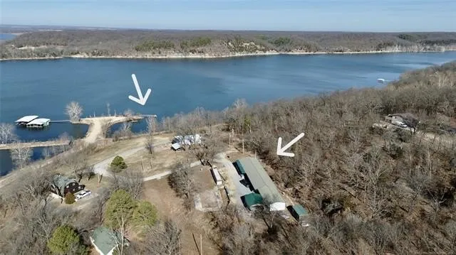 Step into the storybook charm of what was once the iconic Indian Springs Resort—now a striking lakeview property offering breathtaking views of Lake Hudson, direct access to a private community boat ramp, and a world of opportunity. Spread across 1.33 acres on five lots, this one-of-a-kind home blends rustic character with modern comfort. Inside, the open-concept layout welcomes you with wood ceilings, a cozy propane fireplace, and a custom kitchen with stainless steel appliances and abundant cabinetry. A split-bedroom floorplan ensures privacy, while the oversized, climate-controlled laundry/game room opens the door to easy conversion into a fourth bedroom, bunk room, or creative flex space. The heated and cooled garage workshop—complete with a roll-up door and multiple fans—adds storage, workspace, or conversion potential.