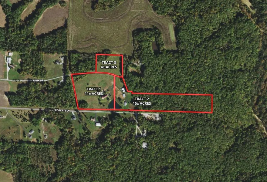 Tract 2 - 15 flat to gently rolling acres with a 5 Bed/2Bath Home, an 8-Stall Stable with electric and water, a hay/storage barn, and new 30x50 shop with concrete floors. There is shared access with tract 1 to the .7 acre stocked pond. On the eastern edge of the property behind the homes is 10 acres of woods that borders the Cuivre River State Park. Tract 1 will share a driveway with Tract 2. See map for details, survey to come.