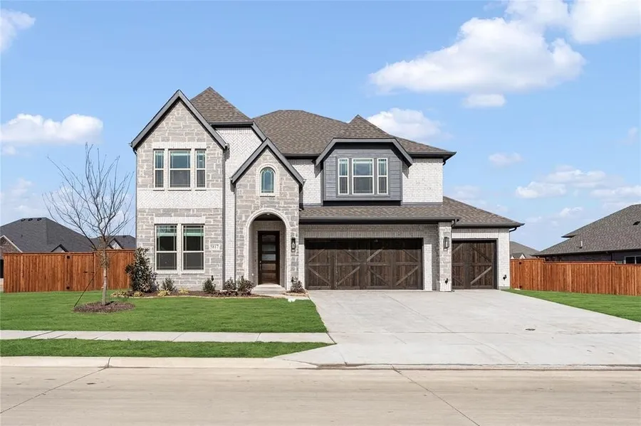 NEW! NEVER LIVED IN. Ready to Close! Bloomfield Homes proudly presents the Rose II, a thoughtfully designed two-story floor plan that combines space, comfort, and elegance in a layout built for everyday living and entertaining. From the moment you arrive, the stone-and-brick exterior with arched entry, cedar garage doors, and a 3-car garage create instant curb appeal. Step through the 8’ front door into a bright foyer that leads to a private Study or into the heart of the home, where an expansive Family Room with vaulted ceilings and a stone-to-ceiling fireplace with cedar mantel makes a striking first impression. The open-concept Kitchen is a true centerpiece, featuring Deluxe finishes with custom cabinetry, Quartz countertops, a large island, gas cooktop, and built-in stainless steel appliances, all flowing seamlessly into the dining area and bright breakfast nook overlooking the backyard and covered patio. A downstairs Primary Suite offers a quiet retreat, complete with a spa-like ensuite bath, dual vanities, soaking tub, and a spacious walk-in closet. Also on the first floor, a secondary bedroom with full bath adds flexibility for guests. Upstairs, you’ll find three additional bedrooms, two full baths, and a large Game Room that opens into a private Media Room for movie nights or gaming setups. Designer details throughout include wood flooring in main living areas, window coverings, and exterior lighting, with everyday conveniences like gutters, gas stub at the patio, and tankless water heater built in. Outdoor living shines with a covered and extended patio, perfect for entertaining year-round. Located in a vibrant community offering pools, trails, playgrounds, and more, the Rose II offers the perfect balance of luxury, function, and location. This is more than a home—it’s where your story begins.