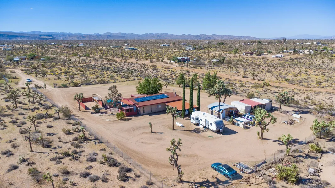 Desert Oasis with 5 Acres, Paid Solar & Equestrian Potential! If you're looking for a horse property with lots of flat usable land & incredible potential or a wonderful desert home surrounded by wide-open space and breathtaking mountain views, look no further! This wonderful single-story desert oasis sits on a sprawling 5-acre lot and offers fully paid SOLAR power, a BONUS ROOM, and countless upgrades inside and out. Step inside to a warm and welcoming living room centered around a wood-burning stove, perfect for cozy desert evenings. The space opens seamlessly to a spacious chef's kitchen, featuring abundant cabinetry and counter space, double ovens, a sleek range top, custom tile backsplash, modern pendant lighting, and a dishwasher for everyday convenience. Just off the kitchen sits a well-appointed laundry room with additional storage cabinetry. A versatile bonus room connects to the carport, offering the ideal setup for a mudroom, creative studio, home gym, or office - the possibilities are endless. The primary suite features a spacious walk-in closet with vanity area and an en-suite bath with dual sinks and an updated shower. The guest bedroom is generously sized, ideal for family or visitors. Step outside and discover endless possibilities on this expansive, flat and usable 5-acre lot - ideal for horses, recreation, or future expansion. There's ample space to design your dream equestrian setup, with room for a large arena, round pen, barn, corrals, and more. The property also features a fenced area ready for an above-ground pool and a patio perfect for soaking up the sun or watching the kids play. After a long day, unwind in the spa beneath the starry desert sky, relax on the patio, or entertain guests while taking in the tranquil desert landscape and sweeping mountain views. Additional highlights include: - Fully owned solar system for energy efficiency - New mini-split system and swamp cooler - very economical - Newer carpet with extra padding and newer subfloor in kitchen - Freshly painted interior - 400 sq. ft. ''Man Cave'' / workshop - Two metal containers with roll-up doors used as horse shelters, adjoining an 18x20 covered shelter (ideal for box stalls) - Dog run and so much more. Buyer to verify and perform their own due diligence regarding all aspects of the property, including but not limited to permits, usage, zoning, and square footage. Agent and/or seller make no guarantees regarding the information provided