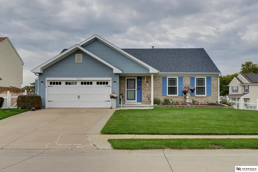 Laura Powers, M: 402-598-3777, , - Welcome Home!This beautiful Millard ranch has it all! You'll love the amazing curb appeal, with a perfectly maintained yard, landscaping, and classic brick and vinyl exterior. Inside, enjoy bright natural light, neutral paint, wood floors, and the first of two cozy fireplaces. The gorgeous kitchen offers white cabinets and stainless steel appliances. Step out to the large deck with a canopied pergola, or relax on one of two patio areas - perfect for entertaining all your friends and family. The huge fenced corner lot provides plenty of space to play or garden. All three main floor bedrooms feature ceiling fans, and the primary suite includes a walk-in closet and dual-sink bath. The finished basement adds a second fireplace, tons of space, daylight windows, and a newer ¾ bath. New furnace in 2024, A/C nearly brand new. Move-in ready, well cared for, and in a prime Millard location - don't mi