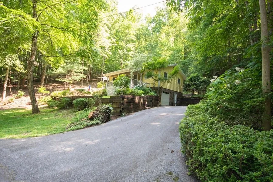 Updated mountain retreat with year-round lake views just 2.4 miles from downtown Franklin. This move-in ready home sits on 1.11 private acres and features luxury vinyl plank flooring, fresh paint, a stacked-stone wood-burning fireplace, and beautifully remodeled bathrooms. The main level offers a bright kitchen with pantry, dining area, and a comfortable living room that opens to a screened porch and a side deck with pergola great for relaxing or entertaining. Upstairs you'll find a spacious primary suite with updated bath, guest bedroom, second remodeled bath, and a bonus room ideal for an office or hobby space. Enjoy multiple outdoor living areas, natural landscaping, paved access, a metal roof with updated fasteners, new gutters, storage space, and room to add a carport. Community lake access allows fishing, kayaking, and peaceful time by the water. Perfect for full-time living, a weekend getaway, or a vacation rental.