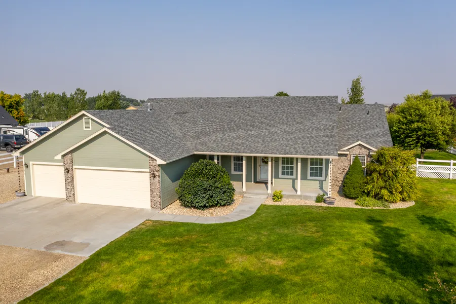 Beautifully maintained and upgraded home on 1.45 acres! If you've been looking for room to roam, or let your animals roam, this home is for you. The interior boasts quartz countertops, durable Pergo floors in the main areas, and an open split floor plan. The owner's suite is just that, a suite. Plenty of space and light. Outside you'll have a beautifully maintained lawn, powered shop, garden space, horse corral and a great patio that's shaded in the evenings.