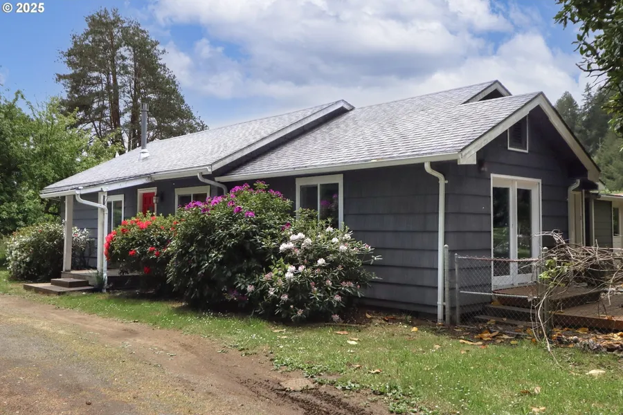 SHORT SALE! PRICED FOR ACTION! This one-of-a-kind property spans both sides of Fairview Road and includes a scenic slice of the Coquille River-your own piece of Oregon paradise. Step into a welcoming ranch-style home featuring: New flooring throughout, Cozy living room with a propane fireplace and oversized picture window, Charming dining nook with a large view window off the galley-style kitchen, Spacious primary suite with walk-in closet, private bath, and direct outdoor access, Second bedroom with outdoor access and standard closet. Additional highlights: Generous mudroom with built-in storage, folding counter, and exterior access, Expansive deck shaded by a mature Magnolia tree-perfect for entertaining or relaxing in nature, Flat, usable land and pasture-ideal for horses, livestock, or hobby farming, 40x24 barn/shop, fruit trees, RV parking, and room to expand with additional outbuildings, Semi-circle driveway adds curb appeal and easy access. This peaceful retreat offers space, versatility, and natural beauty-ready to become your personal haven. Awesome Opportunity - as deals like this don't come often!
