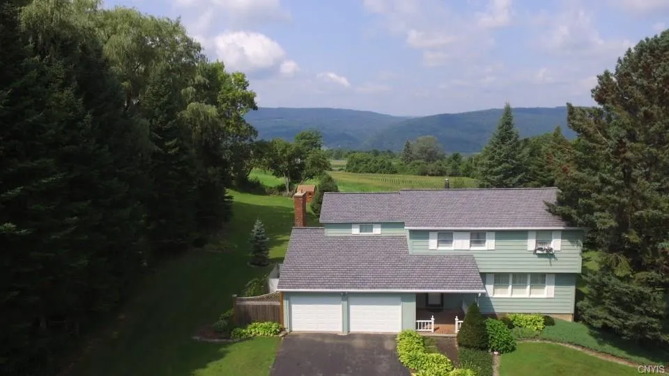Stunning sunsets and vast mountain views can be seen from this beautiful 4 bed 2-1/2 bath central air and gas heated Colonial home. In a peaceful, neighborhood, this home is only 15 minutes from downtown Syracuse. The large eat-in kitchen w/new stainless appliances and the spacious family room feature spectacular views from the large picture windows. Enjoy the ever changing color as the seasons change. The formal dining room is perfect for entertaining and opens into a light and bright living room. The master suite is very spacious. The beautifully landscaped yard is a little over an acre and is mostly surrounded by cedar fencing. Enjoy your morning coffee and the view on the backyard deck. This lovely home is move-in ready with plenty of storage space.