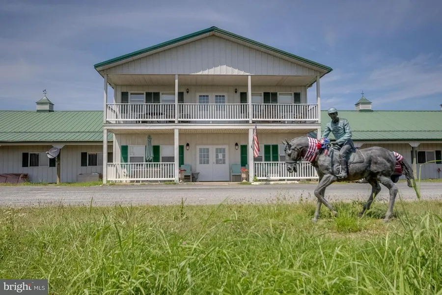 Incredible opportunity to own a race horse training and dressage facility. 59 acre compound includes 100 x 200 indoor arena. 67 stalls. Horse pool and EZWalker ring. 1/2 mile race track. 16 paddocks. 4 BR house and 2 apts - excellent rental potential. 2 riding rings.7 miles of fencing. House has new HVAC, windows, H2O heater. Redone floors and roof. Being painted. Real income potential!