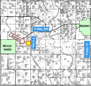 59 acres, m/l, located1 mile east of Woodward. 58.5 crop acres with 85.8 CSR. Excellent tract of land with excellent drainage. $6,500/A