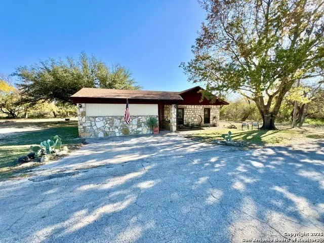This unique offering combins the peacefulness and natural surroundings of the country paired with the convenience and amenities of a gated community plus it has a REALLY cool history! At one time Ft Clark was home to up to 5,000 horses for the US Cavalry and later for mounted WWl & ll soldiers. The core stone structure of this home was originally a tack/saddle building which is still just down the road from the current horse stables. In pictures you will see the original iron stove and rock surround with horseshoes found on the property. Still remaining in the area are the massive horse troughs and ruins of other equine facilities. Sitting on 2 large lots on an ultra quiet street with green space/ pasture on two sides you can hear and see mulitudes of wildlife, from axis deer to wild turkeys etc. Enjoy secluded mornings, afternoons and evenings from the awesome galley patio, opening with original antique patio doors, perfect for grilling, entertaining or just sitting. The inside of the home has been wonderfully updated while keeping the integrity of its historical rustic past. The owners added a massive primary bedroom and en-suite bathroom to add to the other two roomy bedrooms, it has a great floor plan with the family room,home office, kitchen and dining area flowing and open, allowing for conversation & family togetherness. Owners have been recently repainted inside and out, added a new HVAC, top of the line gutters along with other upgrades. There is plenty of room on both sides of house for adding on or additional structures(carport/RV cover/outdoor kitchen) if desired. Newer HVAC, complete gutter system , and 50 amp and 30 amp hookup is also readily available for RV's. Your HOA includes access to the famous Las Moras spring fed mega pool, 24 hr fitness center, acres of nature trails and more. This is a MUST SEE property of you love the outdoors and a cozy country lifestyle.