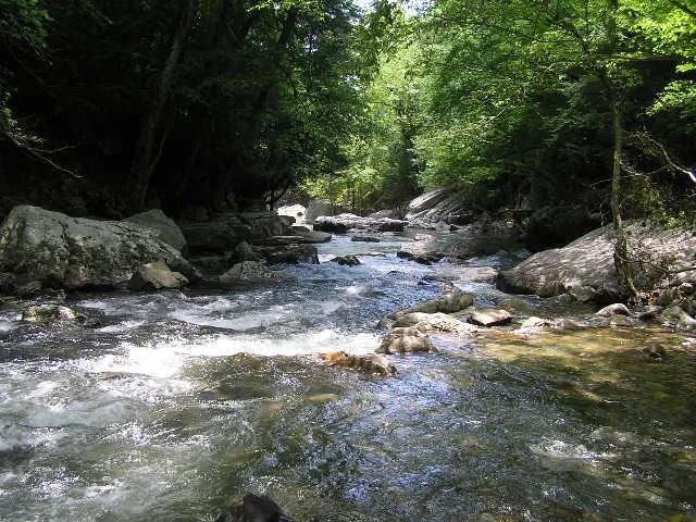 This is at the end of a new gravel road and is secluded. It has Creek and bluffs. There are some cleared areas and it has large landscape rocks. The creek has a cave on the other side that a large spring flows out of. 112 more acres before you get to this and 210 across the creek so you could own over a mile of creek.