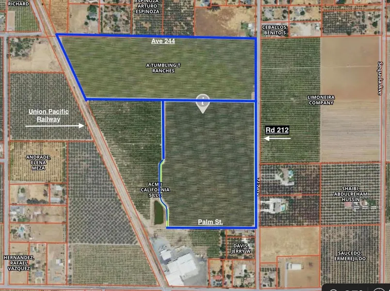 60 acres with two sources of water and 2 types of zoning located in the Lindsay-Strathmore irrigation district. Two of the parcels are zoned M-1 while the other has railway frontage and surrounded by industrial. Property is currently planted in Rubi Red and Pinot Grigio wine grapes in contract with wineries. Prime property for development.