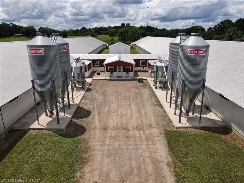 This is a Immaculate Prestige Award winning Pullet Farm raised for Tyson Farms. 48,500 sq Feet of working Pullet Farm #1 is 50x440 #2 is 50x530 Included in this farm are Chore-Tronics 3 controller with broadcaster alert system, Choretime fans 3-36" direct drive exhaust fan with 1/2 hp more and 10-54: tunnel fans 1/1/2 hp belt drive per house. Big Dutchmen feed lines ...90 ft per minute, Chain feeders, lubing drinkers, There is a 500 lb Incinerator with secondary burner to eliminate smoke and odor. The workers whom have been here are just amazed by the work and cleanliness of this Farm with all the best. in the middle is a cross over room that is 10x50 and all the water system plumbing is all in one section, water room is 15x15, storage room is 10x15 and Generator room is 10 x 15. There is an office room off the front with a porch 15x15 and porch is 5x15 that also includes a full wash room including washer and dryer and bath. This farm has 4 feed bins that are 12 tons each, 4 weigh bins that are 2 tons each, 5000 gallon water tank,Generator MTU 80KW 4045 HF 285 John Deere Engine and a 250 gallon Diesel Tank. On the property is 2 ponds and a working cattle Farm all new fences with plenty of grass. Also on the Property is a Clayton Patriot Modular with a 10x40 Porch including 3 bedrooms 2 bathrooms, super clean and even has a prepper's room, walk in closets, walk in shower, its amazing. Beautiful raised garden beds and grape vines and fruit trees are amongst just some of the beauty. There is some history growing in the trees that is awesome sitting beside an outside rock fire patio area. There is a 20x30 and a 8x 10 Storage shed.. This farm needs no upgrades ,Tyson will convey the contract to the new approved buyers. This is a one of the kind Farm you don't want to miss out on this One!