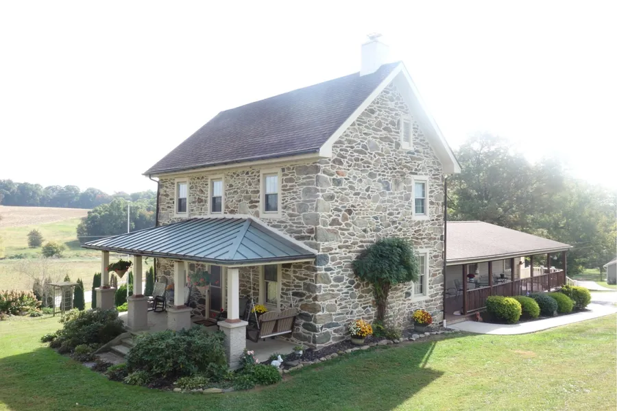 Beauty and charm surround the house, outbuildings and 59.8 acres that is waiting for a new owner to make it home. Land provides the perfect mix of tillable pasture, woods and a stream to compliment the lovely historic stone home with a large 1st floor addition. Out buildings include a 60 X 38 bank barn with an attached 34 x 30 run in area and a 10 x 60 fore bay. Box stalls, tack room and hay loft are protected by newer metal siding. Newer 40 x 40 pole barn features doors on both sides for ease of equipment and hay. 24 x 30 carriage shed and 20 x 8 garage provide the perfect spot for vehicles, and all the necessary farm "toys". Lovely historic home features a mud/laundry room, updated eat-in kitchen with eating bar, 3 BR, and beautiful wood trimmed windows with deep sills on the Living Room and Family Room. Newer roof, pointed stone, front and side porches and updated electric. Finally, add a chicken coop, fenced pastures and great access to 222 for ease of hauling livestock. This is truly an amazing farm!