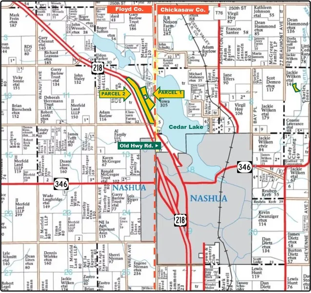Parcel 2 - 52.5 acres, m/l, located on the west side of Cedar Lake in between Hwy. 218 and Old. Hwy Rd.