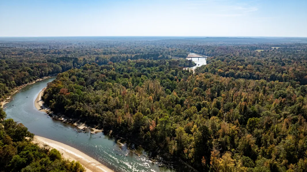 Two Rivers Ranch is densely covered in mature pine and hardwoods. The mix of bottomland, pine timber, heavy hardwood cover, high bank, and gravel shore river frontage provide an excellent diversity for a property of this size.