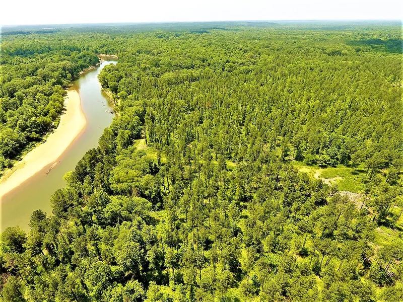 At junction of Highways 67 & 53 in Gurdon, drive south on Highway 53 for 6.7 miles to Whelen Springs. Turn left (east) on E. Main Street and drive .4 mile. Veer right (south) staying on paved E. Whelen Road. Drive 10.5 miles (road will turn to gravel) and turn right (east) on Walters Field/E. Whelen Road. Drive 1.1 mile to west boundary WALTERS FIELD ROAD TRACT, marked with pink flags and Land for Sale signs. Continue east 2.7 miles to west boundary of TATES BLUFF TRACT, marked with orange blazes, pink flags, and Land for Sale signs. Continue .1 mile to gate on right (south) side of road, opened with 5-7-5-7 combo. Another 5-7-5-7 combo gate is located on east boundary of sale, providing access to river frontage. Please close gates while inspecting, and lock after inspecting