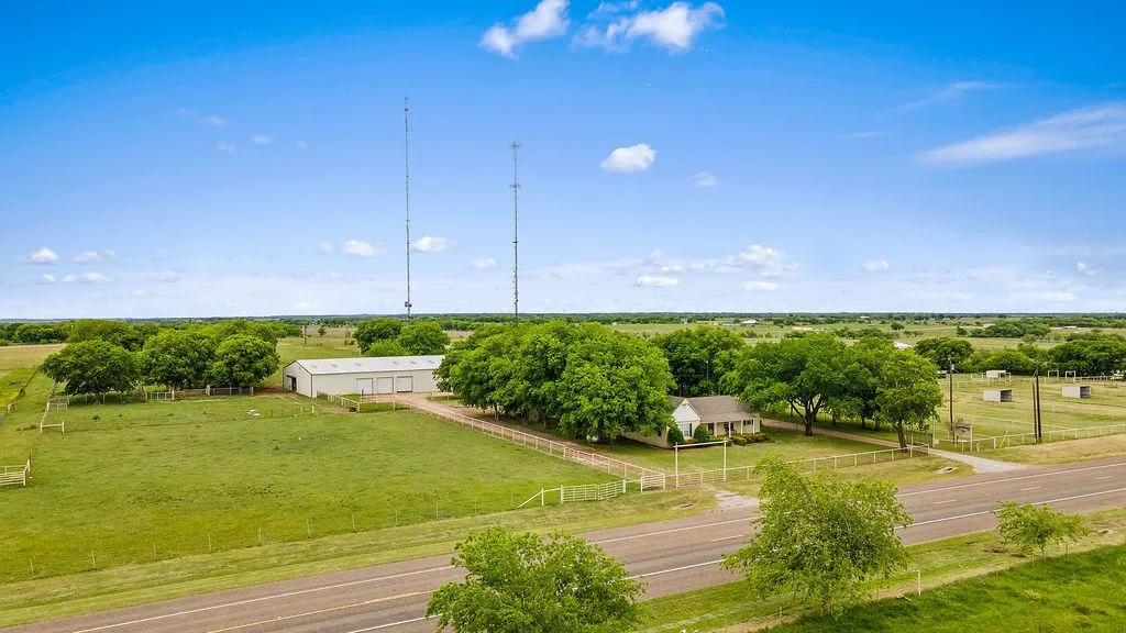 Acreage is perimeter fenced for livestock with numerous livestock paddocks, and multiple, metal 3-sided livestock shelters. State highway and county road frontage. Bynum ISD.