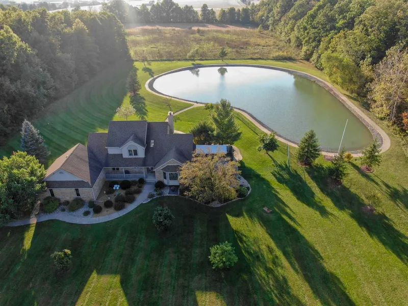This is Truly a one of a Kind Property! Sitting on 10+ Acres (partially wooded) With the Serenity of an Stunning (Stocked) Pond and having a Concrete Sidewalk Around it! The Grand Entrance Flows into the Great Room with Cathedral Ceiling & Fireplace with amazing View of this Nature Paradise! Formal Dining Room and adjoining to the Screened Room Overlooks The Pond. Spacious Kitchen Boasts an abundance of Cabinetry, Kitchen Island, and Breakfast Nook. The Master Suite is Located on the Main Floor featuring a Tray Ceiling, Master Bath has a Garden/Jet Tub, Dual Sinks, Separate Shower and a Walk-in closet. The Open Staircase leads to a Loft, 2 Bedrooms and Full Bath. Walkout Lower Level features Home Theater Projection System, Wet Bar, Full Bath and potential Fourth Bedroom. A Stamped Concrete Patio Wraps around the Entire Back side giving Ample Area for Entertaining. additional Features is the Attached 2 Car Garage, a Fenced Area, Geothermal and Whole House Generator. The Additional 48' x 48' Building has an AWESOME 24' x 20' MAN CAVE with Kitchenette with Pool Table Staying, Full Bath and another 20' x 24' possible In-law Suite, Plus 24' x 48' Insulated Storage/workshop area, All having Heat and A/C. This Country Estate has it All!