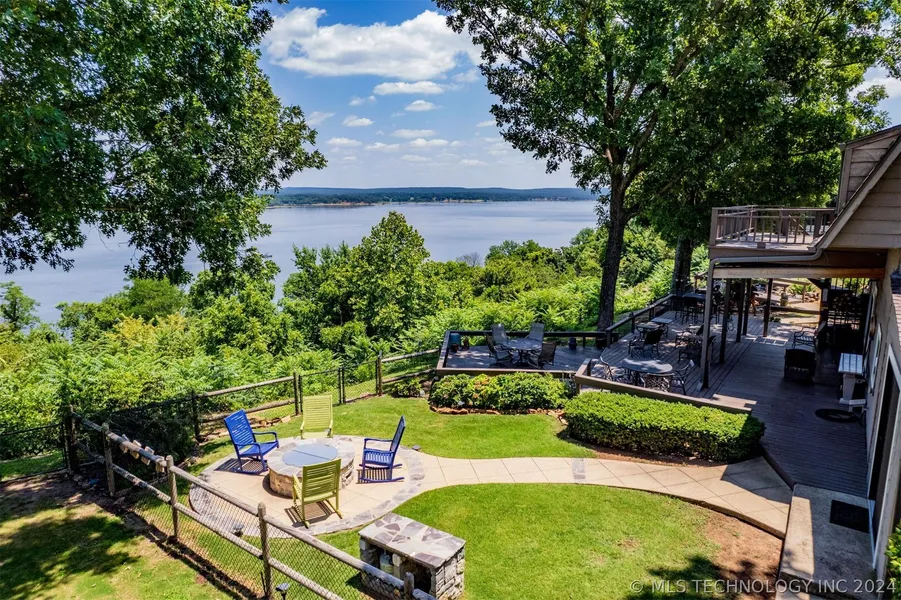 STUNNING LAKE VIEW PROPERTY AVAILABLE FOR SALE! Situated upon a bluff, this property offers breathtaking views of Lake Fort Gibson. Located in a desirable neighborhood, just 2 miles from Sequoyah Bay Marina and Cypress Cove, this house features 4 bedrooms, 2 full baths, and 1 half bath. Recent upgrades since 2019 include fencing, new carpet upstairs, concrete walkways, driveway, deck, rebuilt frog pond, PEX waterline, gravel parking area, Trane heat pump, 2 Mitsubishi mini splits, double oven stove, fire pit, 2 beautiful Andersen sliding doors, 2 hot water tanks, added water line to pavilion, master bedroom flooring, and repainted dining room, kitchen and master bedroom. A new roof and Hardie plank siding were also installed this year. In addition to the stunning lake vistas, there is a 30 x 35 enclosed pavilion with heating and air conditioning, perfect for use as a workshop, outdoor kitchen, event space, or extra sleeping accommodations. AND last but not least a 3 car garage added in 2019 with beautiful flooring and cabinets for storage.A MUSIC VIDEO SHOWCASING THE PROPERTY HAS BEEN INCLUDED IN THIS LISTING FOR YOU TO APPRECIATE THE BEAUTY OF THIS HOME. Contact me for a private viewing to experience it in person.