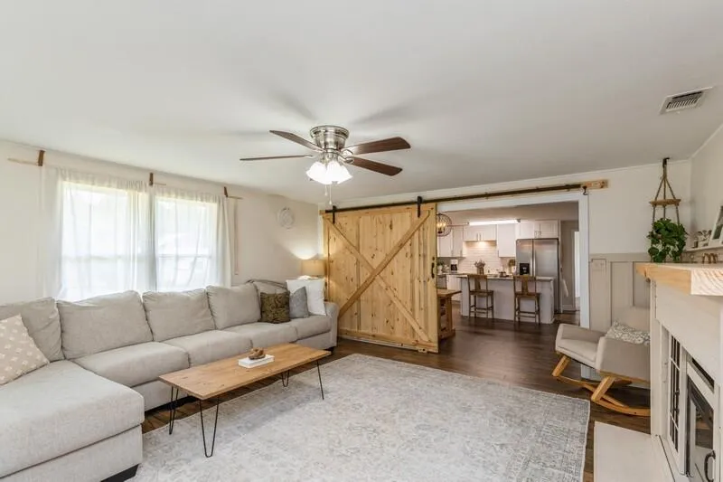 OPEN HOUSE 11-2pm on 7/2/23! 2020 Electrical Panels, 2020 HVAC, re-piped in 2020, hot water heater 2021, new septic in the last 5 years, 2020-2021 stainless appliances, brand new 2023 stove, updated flooring, updated cabinets, granite countertops, updated bathroom vanity, tiled shower, and metal roof! Welcome to this charming farmhouse that has so much to offer! It situated on a 1.10-acre lot, offers 3 bedrooms, one bonus/office room, dining room, massive living room, large walk-in laundry room, huge pole barn, large shed, brand new covered back deck, covered front porch, brand new chicken coop, new firepit area with swings, sand pit/play area surrounded by a deck and so much more! Step inside, and you'll find yourself in a beautifully updated living space. The living room is adorned with gorgeous new flooring, providing a warm and inviting atmosphere. The centerpiece of the room is a semi-built-in fireplace surrounded by board and batten, adding both charm and coziness to the space. The adjacent dining room provides ample space for entertaining guests and enjoying delicious meals. The farmhouse boasts three comfortable bedrooms, each offering a peaceful retreat at the end of the day. The bathroom features a tiled shower, adding a touch of luxury to your daily routine. The additional bonus room is spacious and can be adapted to suit your needs, whether as a guest room, a home office, or a hobby space. The kitchen is a true highlight of the home, as you open the beautiful barn-style door to enter the room, featuring granite countertops that add elegance and functionality. With plenty of counter space, storage cabinets, and modern appliances, it's a joy to prepare meals and entertain in this culinary haven. As you step outside onto the brand-new covered back porch, you're met with a breathtaking view of the well-manicured backyard. Here, you can enjoy the peace and quiet while overlooking the lush greenery. The backyard features a stunning chicken coop, providing an opportunity for sustainable living and fresh eggs. For outdoor gatherings, a fire pit with swings built around it offers a cozy spot to gather with friends and family, enjoying evenings under the starry sky. There is also a sandbox with a built-on deck and play area and other fun features you don't want to miss! Additionally, a massive barn and shed provide ample storage space for all your tools, equipment, and outdoor gear. This charming farmhouse is a delightful combination of rustic charm and modern updates. From the new flooring and granite countertops to the tiled shower and bonus room, every detail has been thoughtfully considered. The front porch and covered back porch invite relaxation, while the backyard offers a well-maintained oasis with a chicken coop, fire pit with swings, a super fun play area, and a spacious barn and shed. It's the perfect retreat for those seeking a blend of comfort, style, and outdoor enjoyment. The 2021 survey and all 2021 inspections can convey to the new buyer for this lovely home. The county appraisers changed the effective date to 2015 after renovations but the actual year built is 1939. Please call for more information and to schedule a showing!