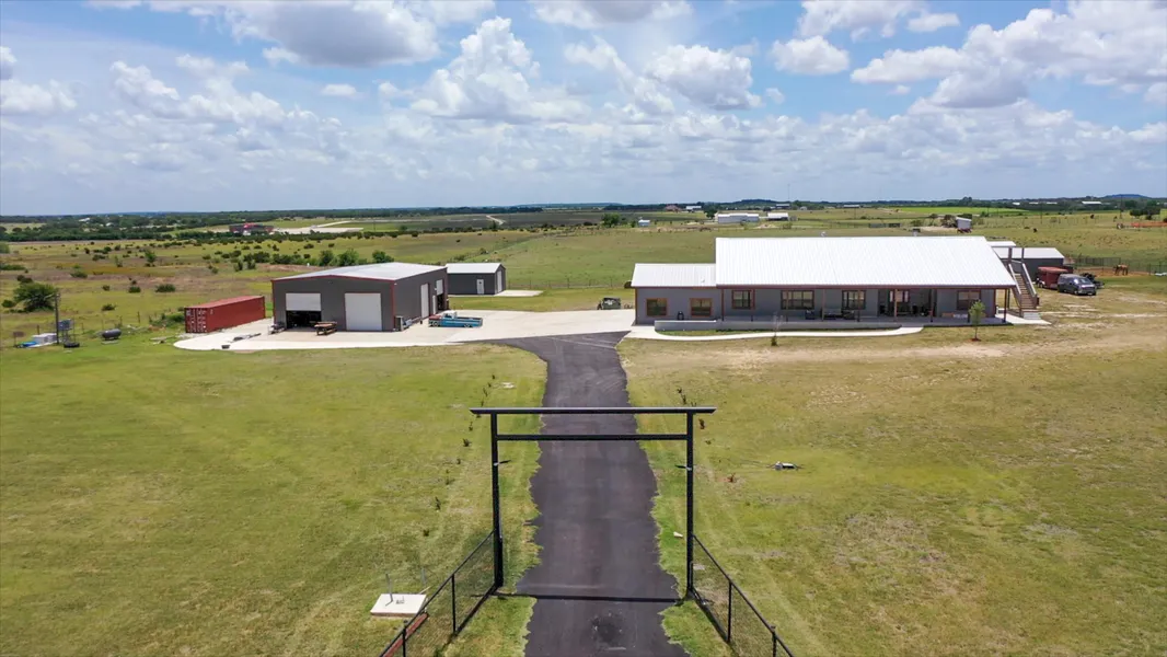 Improvements galore on this 10 acre, Ag Exempt property featuring a stunning 4 bedroom 3 full bath house with a live-in apartment on the 2nd floor that has it's own private entrance that is ready for you! The floorplan was well thought out and boasts an open floor plan in the main area with the kitchen opening up to dining and living room and a great room that is located as the hub for the 3 secondary rooms. The Primary bedroom is large and spacious with a private office area and a grand bath featuring a jacuzzi tub and walk-in shower. The house also has a large game room that has access to the back covered patio. Speaking of patios, you can enjoy the Texas country evenings on either of the grand covered patios on the front or back of the house. This property features a 40X60X14 weld-up red iron building with spray foam insulation along with a 10,000lb. lift, full bath with a shower and a washer and dryer hook-up along with a split 2-ton split a/c and heat system. Along the side of the shop is a poured slab ideal for a RV with water, electric, and septic nearby. A separate 20X25 building that is spray foam insulated is currently being used as a home gym. The property runs off well water but there is a waterline at the road that needs to be confirmed on size. The well house is 20X25 and is spray foamed insulated as well. Did I mention to bring your horses, the property boasts a 36X30 six stall horse barn along with a 40X30 awning that is currently being used for dog kennels but is a great covered area that could be used for multiple uses. And to top it all off this property is very close to being self-sufficient and off-grid with 2 recently installed 200 amp Generac generators. Located conveniently a half of a mile off of HWY 183 just North of Liberty Hill this property is ideal for someone looking to live the country life but wants to be within an hour of Austin, Georgetown, Round Rock, and close proximity to I35. Don't miss out on this great property!