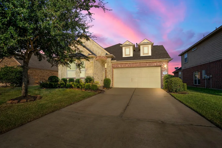 Beautiful 1.5 story in great location on quiet street within walking distance to pool & rec center. Gorgeous curb appeal with established landscaping, stacked stone front elevation & dual wide driveway. Inviting front porch, high ceilings, crown molding, neutral color palette throughout, formal dining room, spacious living room featuring cast stone gas log fireplace & open concept floorplan. Island kitchen features granite countertops, gas range, breakfast bar, an abundance of beautiful cabinetry. Primary suite has a wall of windows overlooking the green space, en-suite has soaking tub, separate shower and dual vanities. Upstairs features a spacious & versatile game room and 4th bedroom with a full bath. Step outdoors to a private retreat, enjoy a covered patio with plenty of yard space with no back neighbors as the property backs up to a large green space. Senterra Lakes sub-division has the added benefit of a LOW TAX RATE and offers plenty of community amenities, please see photos.