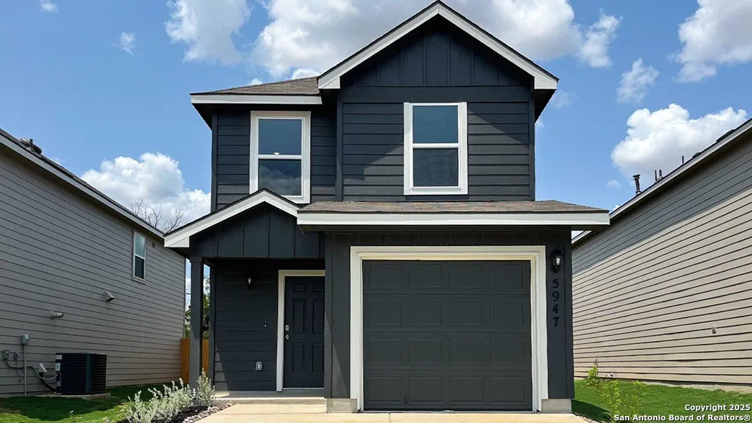 The Robin is a charming two-story home featured at Blue Ridge Ranch in San Antonio, TX. Featuring 2 classic front exteriors, this 2 bedroom, 2.5 bathroom home also offers 1130 square feet of living space and a 1-car garage. A front porch (per plan) welcomes you into the home and opens to the gourmet kitchen which includes quartz counter tops, quality cabinets, stainless steel appliances and an open concept floorplan with the kitchen flowing seamlessly into the dining room and living room. The main bedroom has an attractive ensuite bathroom that features a quartz vanity countertop and quality cabinetry. Enjoy additional storage with a spacious walk-in closet located off of the primary bathroom. Your secondary bedroom will feature quality carpet flooring and a closet, and can be used as bedrooms, offices, work out spaces or other bonus rooms. The possibilities are endless with The Robin floor plan. Additional features include sheet vinyl flooring in entry, living room, and all wet areas, quartz counter tops in all bathrooms and HOME IS CONNECTED base package. Using one central hub that talks to all the devices in your home, you can control the lights, thermostat and locks, all from your cellular device.
