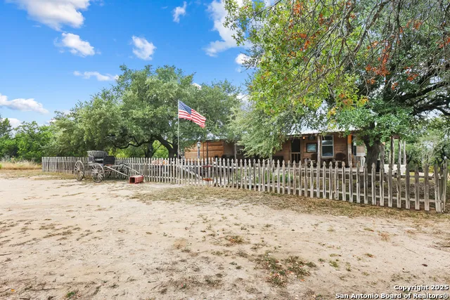 7.81 Acres WILDLIFE EXEMPT/UNRESTRICTED - Hill Country Retreat with Old West Charm! Immerse yourself in the authentic cowboy country ambiance, where rustic charm meets natural beauty! An inviting escape nestled among rolling hills & breathtaking views. With approximately 750 square feet of living space, this charming home features two bedrooms and two baths perfectly suited for those seeking a tranquil lifestyle surrounded by nature's beauty. The property's generous outdoor space invites you to lose yourself in the peaceful surroundings & savor the serenity of hill country living. This is what the Hill Country is about! Enjoy your spacious three-sided porch with your family & friends, sunsets, camp fires, camp outs, story tell'n, guitar pick'n, smores & laughter will surely be had here! Located in the county where time has almost forgotten, quiet, peaceful, no thru traffic but just a few short miles to Hwy 16 the route to Bandera, Boerne & SA for work, shopping, medical. Property has a fenced yard, perimeter fenced with 3 gated entries. Enjoy the abundant wildlife - White tail, Axes, hogs, turkeys, birds and/or bring out your horses, goats, chickens they're all welcome! This property offers a unique opportunity to experience peaceful country living surrounded by picturesque landscapes as a residence, investment or week-end getaway! 2nd Bath is unfinished, NEW WATER WELL installed by seller upon reasonable offer. Property has been appraised recently by license appraiser and we are substantially priced below value. Don't miss your chance to experience this remarkable Pipe Creek retreat!