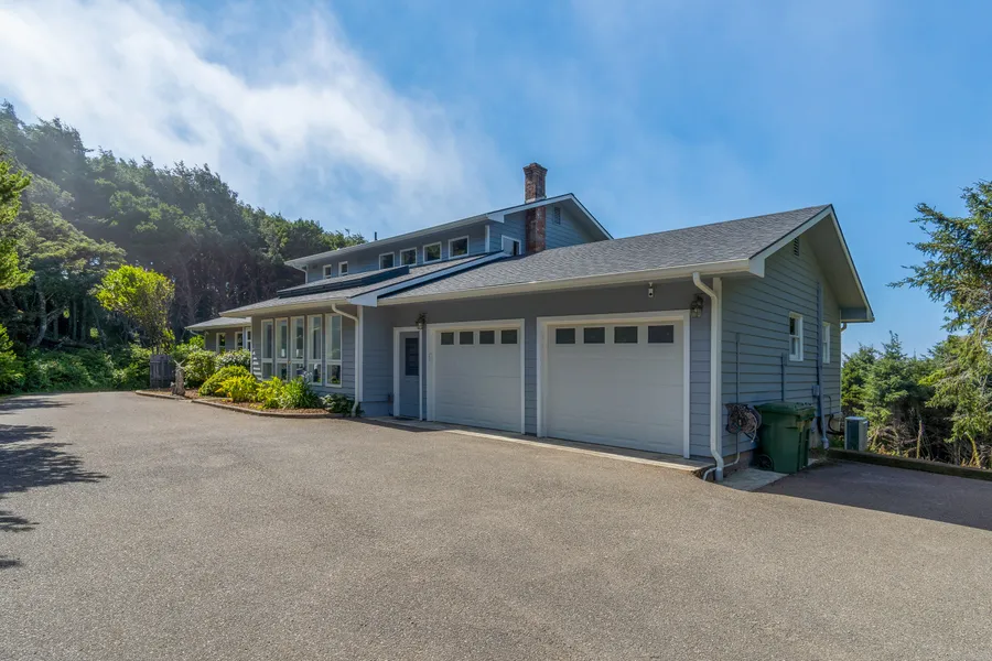 Private 35 acre ocean view estate! Peaceful, serene property w/magnificent home in a beautiful forest setting. You'll love the State Park/Beach right next door, and only minutes from Bandon Dunes Golf Resort! Home completely renovated with new kitchens & bathrooms, 5 bedrooms, 2 family rooms, a loft, sunroom, dining room, den, large view deck & huge storage room. 10x20' shed, workshop area in garage, abundant elk & deer on property, 6,000 new trees (2021). Seller is an Oregon licensed broker.