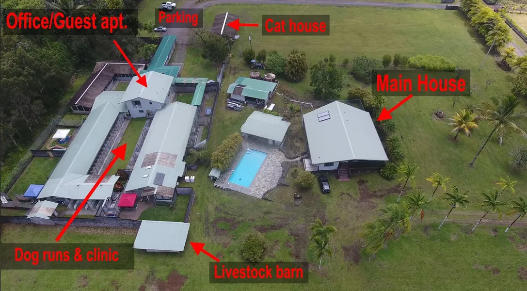 Welcome to Hawaii Islands best known and longest established pet boarding business. This 6-acre compound includes a lovely home, kennels, boarding spaces, small livestock barn, pet activity yards, offices, and storage on three 2-acre TMKs (3-1-6-9-56, 57, and 58). The business has served the island community for 40 years and is specially permitted to operate as a boarding facility. Live in the lovely home on site and step into a thriving business with expansion opportunities. Recent appraisal of the real estate alone came in over the list priceyet the commercial operation is also included in the sale! With the home buying boom, this well-established business is experiencing a rush of new clientele. The business provides boarding, grooming, quarantine services and more, with a sterling reputation built on many years of professional care.