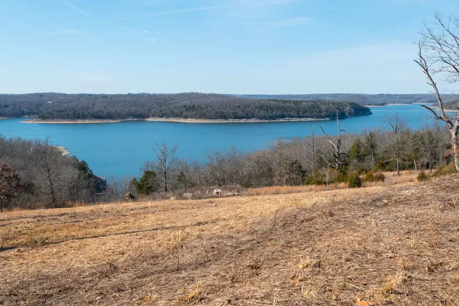 RARE PANORAMIC VIEW of the east shore of Lake Norfork. This 6 acre (m//) building lot at the end of a cul-de-sac is ready for your dream home. Gently sloping, private, cleared and bordered on 2 sides by Government Land, the view is magnificent and there is a short path through Government Land to the lake shore. The driveway and septic systems are already installed, and the lot lends itself to a walkout basement home with full deck. Design your dream home, or area contractors have plans ready to build.