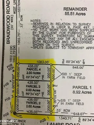 Very nice building sites. Natural gas available for parcel 2. An onsite water supply & soil evaluation test was done by the County in the fall 2020 on a couple of the parcels. Appear to be good building sites. Three lots already split & surveyed can be purchased with 4 additional lots ( packages of 3 [ 6 acres ], 4 [ 9.32 acres ]or combined 7 - [ 15.32 acres ] ). Nice lots & area. Lots mostly cleared & ready to go.