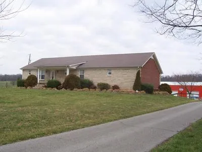 Beautiful Bedford stone home with 6+/- acres. Home features 3 spacious bedrooms plus large master suite with large bath, there is also 1 bath on 1st floor, beautiful spacious kitchen, 15X23 living room. Basement features a large utility room with bath, a large unfinished storage room, a large recreation or bedroom, also 2 car garage, security system, hvac system with gas furnace, blacktop drive concrete patio, lots of landscaping, large front yard. Outside features a 2 bay detached metal garage 30X48 with 2 10X10 bay doors a 36 in walk in door. There is also a 12X12 bay door at back side for a drive thru, garage is insulated and wired, there is also a 15X23 equipment storage shed, a 2 stall horse or cattle barn with metal roof, aluminum perforated siding, land is 6+/-acres lays mostly level all fenced, good grass, with several gates. Must see to appreciate!