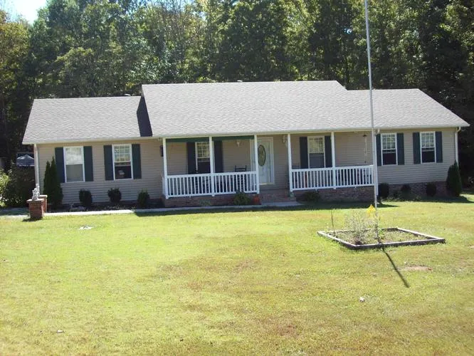 Nearly new country home on approximately 6 acres overlooking a pond and creek with several outbuildings for storage or work space. This home has approximately 1900 square feet of living space with 3 bedrooms, 2 baths, large living room, laundry room, and large master bath with walk in closet. For your enjoyment you have a front porch with lovely landscaping and also a spacious deck on the back of the house for your cookouts or just relaxing. The home has county water, and also a spring house for your use. So if you are in the market for a country home on a few acres and a peaceful setting with room for your animals and garden only minutes from town, don't let this one slip by.