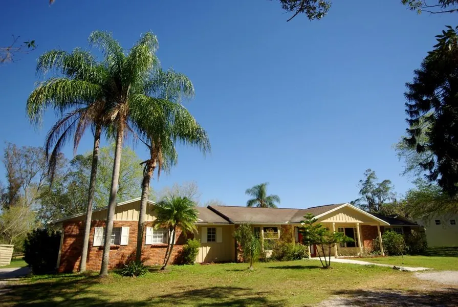 SOLD ON 11/12 FOR $475,000! Big home with attached guest house in Myakka Valley Ranches, Sarasota's premier equestrian community. The main house has 3 bedrooms and 4 baths; the guest house has 3 bedrooms, a den, a laundry room, and a bathroom. Great for a group home, a home-based business, or a big family. The main house is built around a 25X27 covered lanai with a wet bar and a fireplace; there is a big, caged swimming pool. The home is surrounded by huge, beautiful oaks, and has a big pond, and plenty of good pasture for your horses. A separate 2-story, 4-car garage has a big unfinished apartment on the second floor, with a balcony that has a beautiful view of the property. This is a very dramatic property, that will impress you the minute you set foot in it. Myakka Valley Ranches is a great 280+ family communitywith more saddle trails than any other subdivision in the area. There is a very active saddle club, and a book club. Myakka River State Park, Florida's biggest state park, borders the subdivision. There are good schools, shops, and restaurants in the area. Downtown and the white beaches of Siesta Key are only 30 minutes away. Seller will provide AHS home warranty, and a $20,000 credit towards a new roof. Please, see also pdf files of survey and saddle trail map of Myakka Valley Ranches.