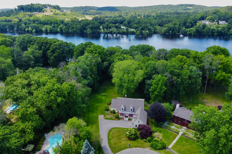 Nestled at the end of a private cul-de-sac, surrounded by a mature landscape, perennials, and the sun sparkled Merrimack River beyond, this unique property is well suited for those seeking a peaceful, waterfront lifestyle. Enjoy striking views and serene sunsets from almost every room including the spacious covered porch just off the family room. The open flow of the main living space is perfect for entertaining with each room beckoning your focus through airy picture windows. A peaceful oasis with a sense of calm, this home features four bedrooms with options for a primary suite on both the first and second floor. Two additional bedrooms on the second floor share a Jack and Jill bath. An airy loft, with ample storage could function as a recreation/ play room, home gym or library. The full basement is partially studded and ready for future expansion. Many recent upgrades including new appliances, new roof, upgraded furnace, Central Air, Radon Mitigation. Live waterfront & love your lifestyle