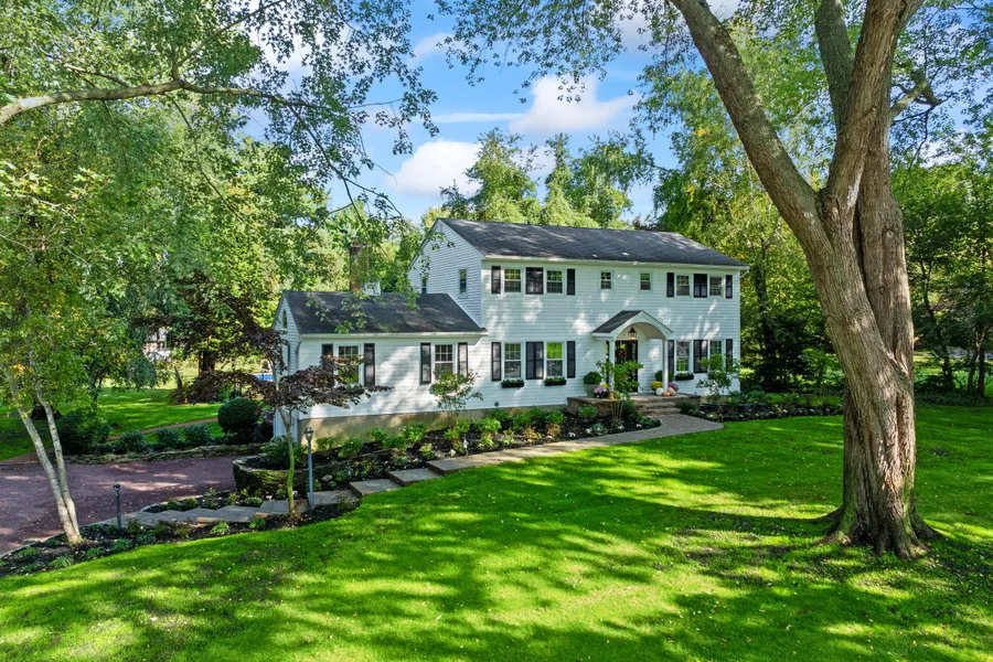 This stunningly renovated colonial is located in a picturesque neighborhood with oak tree-lined streets and beautifully maintained homes set back on flat 1-acre properties.
