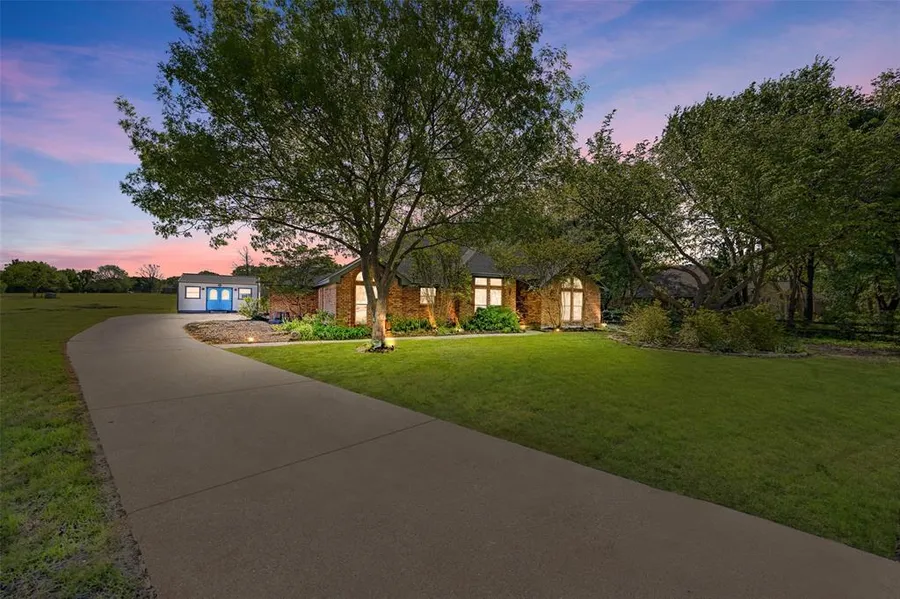 NEW ROOF COMING SOON! Welcome to your dream retreat just minutes from town! This beautifully updated 3-bedroom, 2.5-bathroom home, located on a quiet cul-de-sac, sits on nearly an acre (.94 acres) in the highly sought-after Wylie ISD (A-rated) offering the perfect blend of peaceful country living and convenience. Step inside to discover a spacious split-bedroom layout with two living areas, two dining spaces, and a stunning double-sided brick fireplace that brings warmth and charm to both living rooms. The entire home features durable, stylish porcelain wood-look tile flooring, complemented by fresh, modern paint throughout. The updated kitchen boasts tier 2 upgraded granite countertops, adding both beauty and value to the heart of the home. Additional highlights include custom built-in features for added functionality and a lifetime warranty almost all windows, offering peace of mind for years to come. Step out back to your private oasis a large covered patio courtyard overlooking a sparkling pool with brand-new decking completed in 2025. The fenced backyard offers plenty of space to roam, garden, or play, with additional open acreage and a large storage shed that stays with the property. Best of all? No HOA, no known restrictions just pure freedom to live your way. Enjoy the serenity of a quiet cul-de-sac location with quick access to 1378, and just minutes from Hwy 78 and 544. Dont miss this rare opportunity to own a slice of country paradise with space, style, and schools youll love! City of Lucas will be redoing streets and culverts summer 2025.