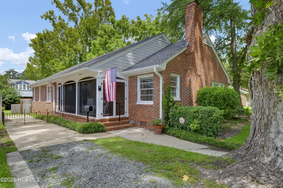 MOTIVATED SELLER! Charming 1940s cottage in the heart of historic Brookwood-one of Wilmington's most beloved neighborhoods, known for its majestic oaks, friendly neighbors, and film industry charm. This 3 bed, 2 bath home offers nearly 1800 sf on the main floor with hardwoods throughout (even under the carpet!), a sun-filled office, and renovated kitchen (2019) with quartz countertops and custom cabinetry. Upstairs, a spacious 514 sf heated/cooled bonus room with walk-in cedar closet is perfect as a 4th bedroom, playroom, or office. Enjoy lemonade on the screened porch, or entertain in the private fenced backyard. Other highlights include a whole house generator (2024), natural gas fireplace, updated systems (new water heater & disposal 2025), and even a rare basement. Just minutes to Wallace Park, vibrant Historic Downtown Wilmington, Cargo District, UNCW, Midtown, and Wrightsville Beach. Includes a 1-year home warranty for peace of mind. See attached/contact agent for a detailed list of features. 514 sf upstairs is included in 2310 sf - is heated & cooled, though ceiling height not all above 7'.