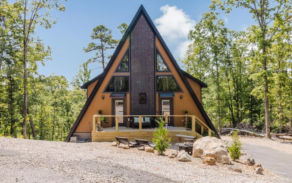 Welcome to this One of a Kind 3 story A-Frame with a detached garage/shop. This one is truly a must see to appreciate the accomodationg size and tranquility that it offers. Upon entry you are greeted with a beautiful open concept living area with 30' vaulted tongue and groove ceilings that open to the grand loft above with a stunning custom built live wood bannister, not to mention the gorgeous fireplace centered from floor to ceiling that brings the whole space together. The kitchen is a chef's dream with custom built cabinets, a 6 burner gas cooktop, top of the line SS appliances and tons of storage space. On this level you will also find the half bath/upstairs laundry room and the Primary Suite with custom details and a Primary bathroom that is timeless as it is unique with a soaker tub and walk in tile shower. The loft is a large open space with so many possibilities, it includes 1 of the 3 full size bathrooms with a walk in tile shower. The bottom level offers a complete 2nd living space with full kitchen, bathroom and laundry and over 500 sq ft of H/C partially finished space. Hot Springs Village is the largest gated residential community in the US offering something for ALL!