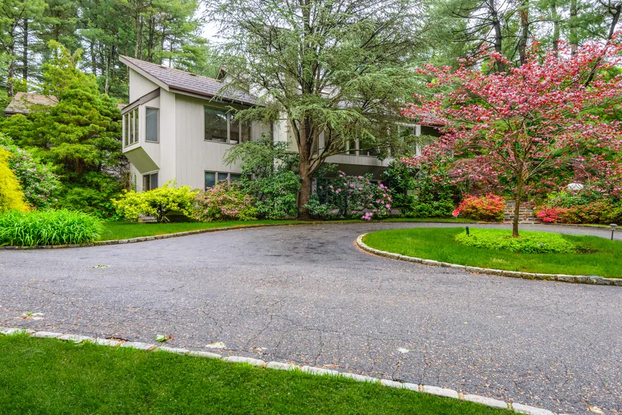 Welcome to this stunning contemporary home nestled on parklike grounds in a serene cul-de-sac setting in the heart of Muttontown. Boasting 5 bedrooms, 5 full baths, and 2 powder rooms, this residence offers an unparalleled blend of luxury, comfort, and sophistication. Upon arrival you'll be captivated by the pristine landscaping and the tranquil ambiance of the neighborhood. The house faces east, allowing for ample natural light to illuminate the interior throughout the day. With 2.040 acres of land, including mature specimen plantings, this property offers a true sanctuary of quietness and privacy. Step inside to discover a spacious and thoughtfully designed layout. Cathedral ceilings and floor to ceiling windows create an airy and inviting atmosphere, while 3 fireplaces add warmth and charm to living spaces. The main level includes primary bedroom including a luxurious retreat with a beautiful library overlooking the private yard,. Tremendous living room area w/dual fireplace to dining area. The heart of the home is the tremendous kitchen, which is perfect for both everyday living and entertaining. Adjacent to the atrium, it offers ample space for meal preparation and gathering. Whether you're hosting a formal dinner party or a casual gathering, this home provides the ideal backdrop for memorable occasions. Additional highlights include a walk-out basement w/dual fireplace and office and full bath ideal for recreation or relaxation. A new central air conditioning system, a full automatic generator for added peace of mind, and 11-zone sprinklers to keep the expansive grounds lush and green. The central alarm system ensures security, while the 5-zone heating system ensures comfort and efficiency year-round. With its impeccable craftsmanship, contemporary design and abundance of amenities this home offers a rare opportunity to enjoy luxury living in a peaceful and picturesque setting. Make this your own extraordinary property.