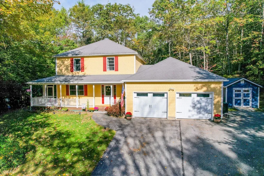 Move-in-ready 3-bedroom, 3-bath Colonial in a fantastic neighborhood with a private/deeded ROW to a sandy beach on No Name Pond. The first floor is fully finished in ceramic tile (classic white and wood-look) with radiant heat, while the stairs and second floor feature real wood flooring. The main level offers a flexible living room and den, a well-appointed kitchen, and a hallway with a closet that leads to a dedicated laundry room with direct access to the attached 2-car garage (storage above). The primary bedroom suite provides comfort and ample closet space, and a whole-house generator connection adds peace of mind. Outside, enjoy a relaxing farmer's porch, a large rear patio, and a private, landscaped 1.69-acre wooded lot ideal for entertaining and everyday living. A beautiful 3 bedroom, 3 bathroom Colonial with shared waterfront access to No Name Pond this one is a must-see!