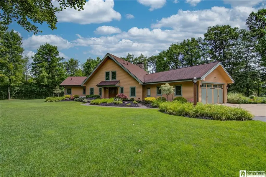 This gorgeous home was custom built by G.L. Olson and is nestled in a beautifully private setting alongside the Moonbrook Country Club golf course. Views from the wall of windows, sunroom and deck overlook a nicely landscaped lawn and out onto fairway #12. This is a very high caliber golf course, and memberships are easily available! The meticulously maintained home features a first floor master suite along with a second bedroom or den and a third bedroom and full bathroom on the second floor loft. Open concept living with cathedral ceilings and a gas fireplace at the focal point also features a wall of windows with lovely views, a dining room and open kitchen with eat-in island and additional dining space. Just off of the kitchen sliding glass doors lead to a year-round heated lanai/sunroom to relax and enjoy the surrounding natural setting. Additional features include Hardy Plank cement siding, central AC, radiant heat in most of the home, cedar woodwork throughout and a spacious outdoor storage barn.