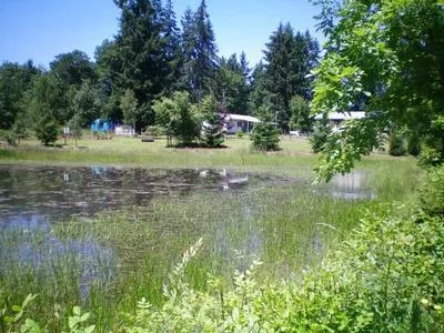 Talls fir trees cover this 6.08 acres adjacent to larger timber tracts. Private bass pond, garden area, wildlife, country living. Perimeter fencing. Close to town. Cozy manufactured home has updates.