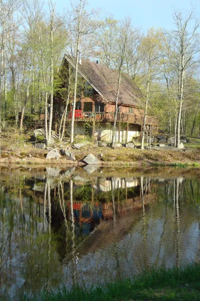 Just Over 6 Secluded Acres with a Private Lake and Island. This Much Loved and Well Maintained Home Offers A Wall of Windows to Enjoy the Lakefront View That's Offered. Features Include a Spacious Great Room w/24' Tongue-n-Groove Open Beam Ceiling, Stone Fireplace, Fan & A Vermont Castings Wood/Coal Stove, Eat-In Kitchen has a 3 Stool Breakfast Bar, Ample Oak Cabinets & Counter Space, 2 Bedrooms on the 1st Floor, Cozy Loft w/Cathedral Open Beam Ceiling, Master Bedroom with View & Walk In Closet, Master Bath has Oak Vanity, Built In Shelves & Cathedral Ceiling, 1-Car Built In Garage,Large Deck And A Boathouse w/Paddle Boat to Enjoy Your Oasis.
